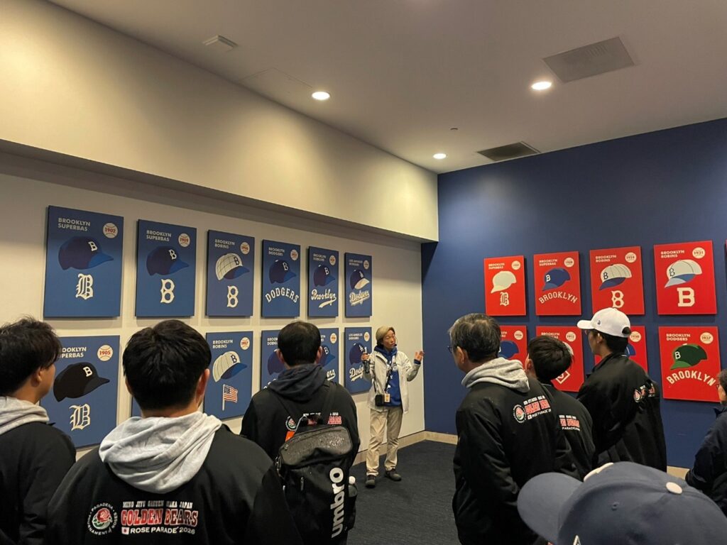 高校生たちはホテル滞在とホストファミリー宅を行き来するスケジュールで過ごしており、ちょうど私の友人がホストファミリーとして2名を受け入れていました。食事会にも参加させてもらったのですが、久しぶり日本の高校生たちと交流し、彼らの吹奏楽にかける情熱には本当に感動しました。 彼らのホストファミリーとの自由行動日にドジャースタジアムツアーに参加するということで、私も便乗して、初めてスタジアムツアーに参加することになったというわけです。